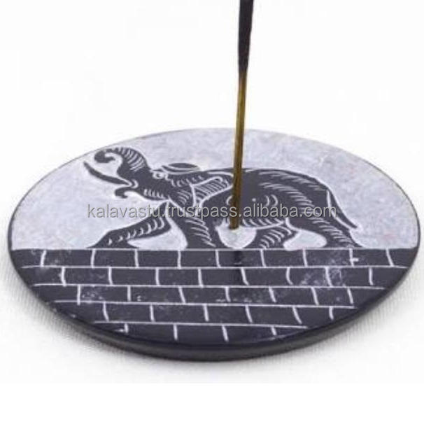 Kalavastu Carved Colored Soap Stone Plate Incense Burner Ash Catcher for Indian Incense Aromatherapy Room Essential Oil Diffuser