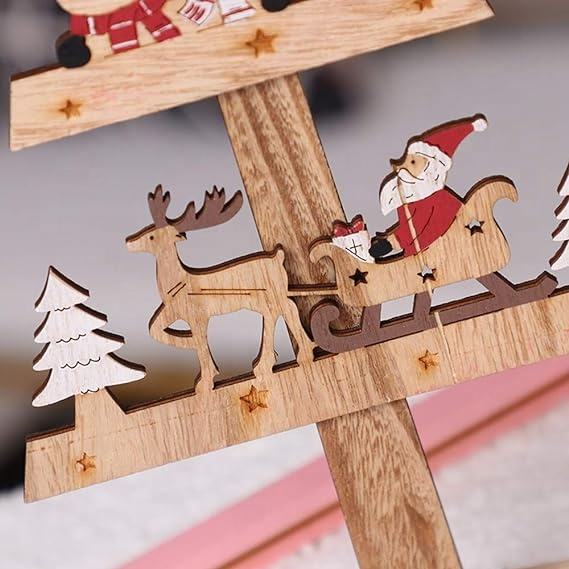Delarchi H99 Vietnam Wooden Plywood Tabletop Christmas Tree 2-Piece Set-Small Mini Animal-Themed Religious Home Decor