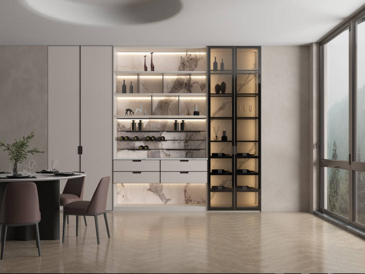 WoodenShelving Built-in Library Wall Customizable Living Room Bookcase Laminated Board Wine Cabinet Living RoomFurniture Display