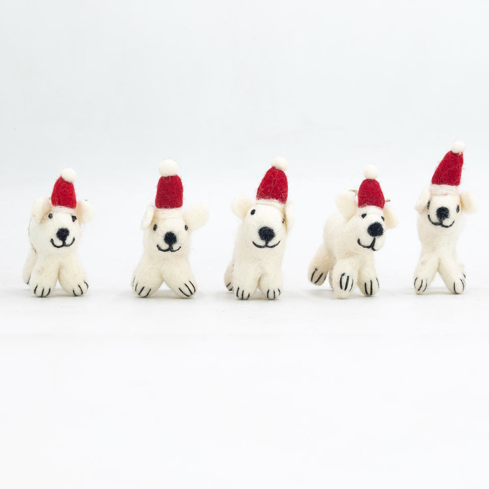 Wool Felt Bear Ornament with Red Santa Hat Hanging Christmas Tree Decoration for Children's Christmas Decorations