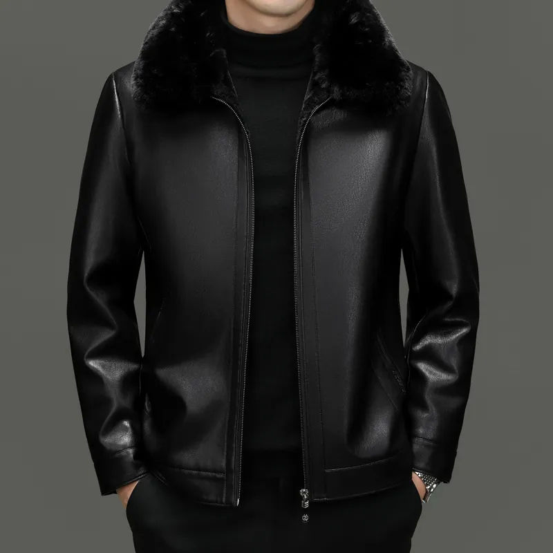 Wool/Viscose Men's Winter Thickened Warm Sheep Fur Collar Waterproof Hooded Business Casual Jacket Raw