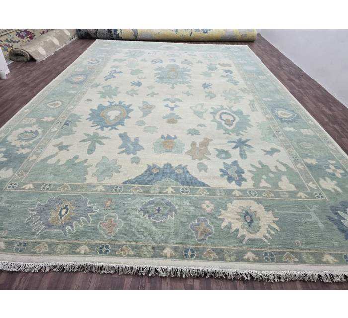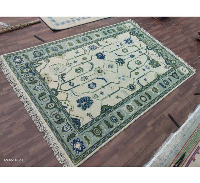 pattern:Abstract Green Oushak Rugs Hand-Knotted Wool