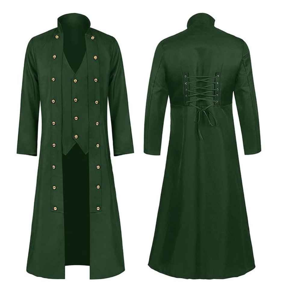 Wool blend gothic coat for men with stand collar metal buttons and side vents for formal winter fashion cosplay and parties