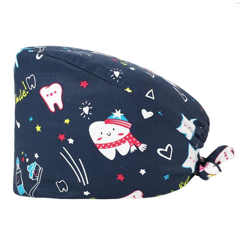 Working Cap Dental Sweatband Cute Printed for Dental Clinic Scrub hats Dental Scrub Caps Tie Back Hat Unisex Breathable