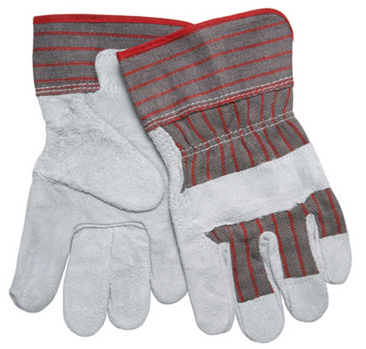 Material:Cow Split leather palm & back cotton cloth with rubber cuff.