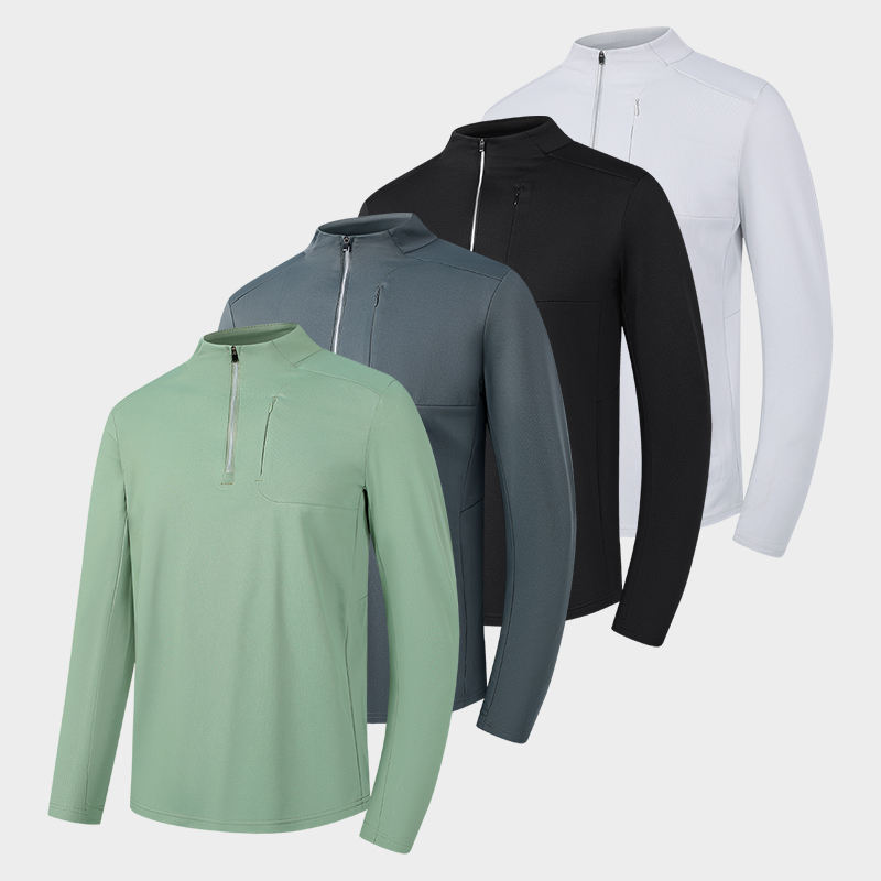 Workout Gym O Neck Sports Quick Dry T-Shirt Breathable 100% Polyester Zip up Long Sleeve Custom Sublimation T-Shirt for Men
