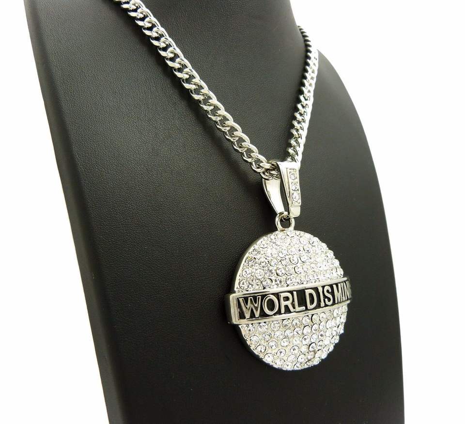 World Is Mine Letter Design Hip Hop Certified Gold Pendant 30"Cuban Chain Diamond Necklace Jewelry Gift for Women & Men