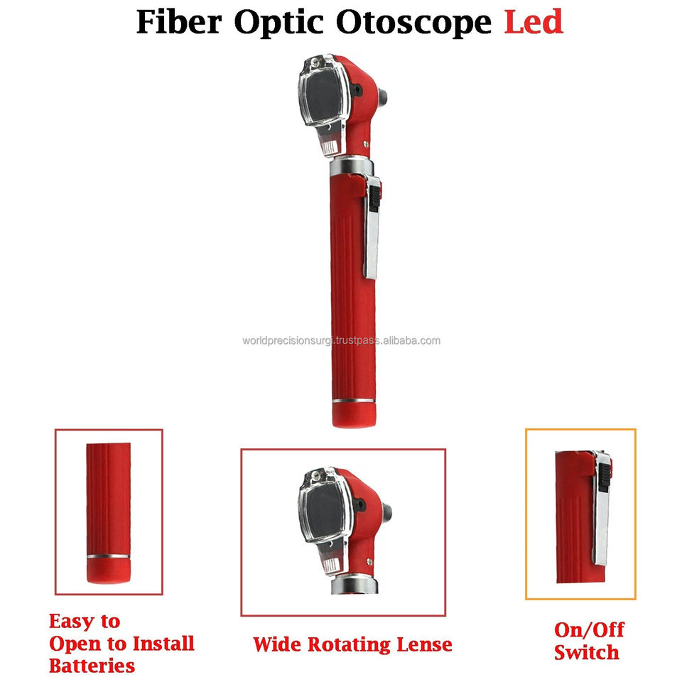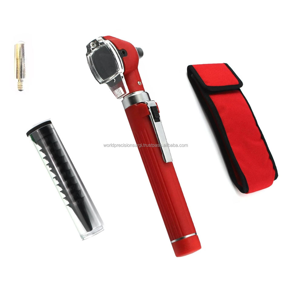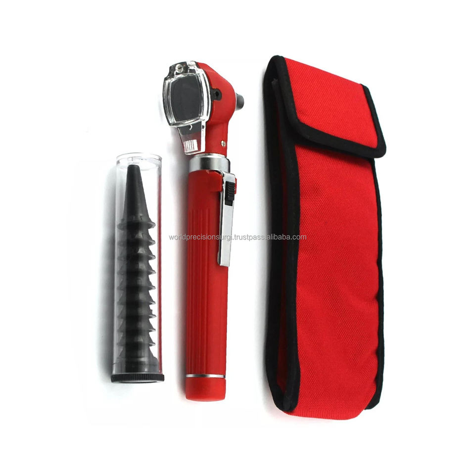World Precision Surgical Premium Mini Manual Fiber Optic ENT Otoscope Red Color CE Class II Portable Ear Examination 150mm