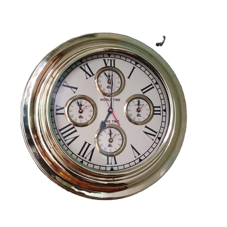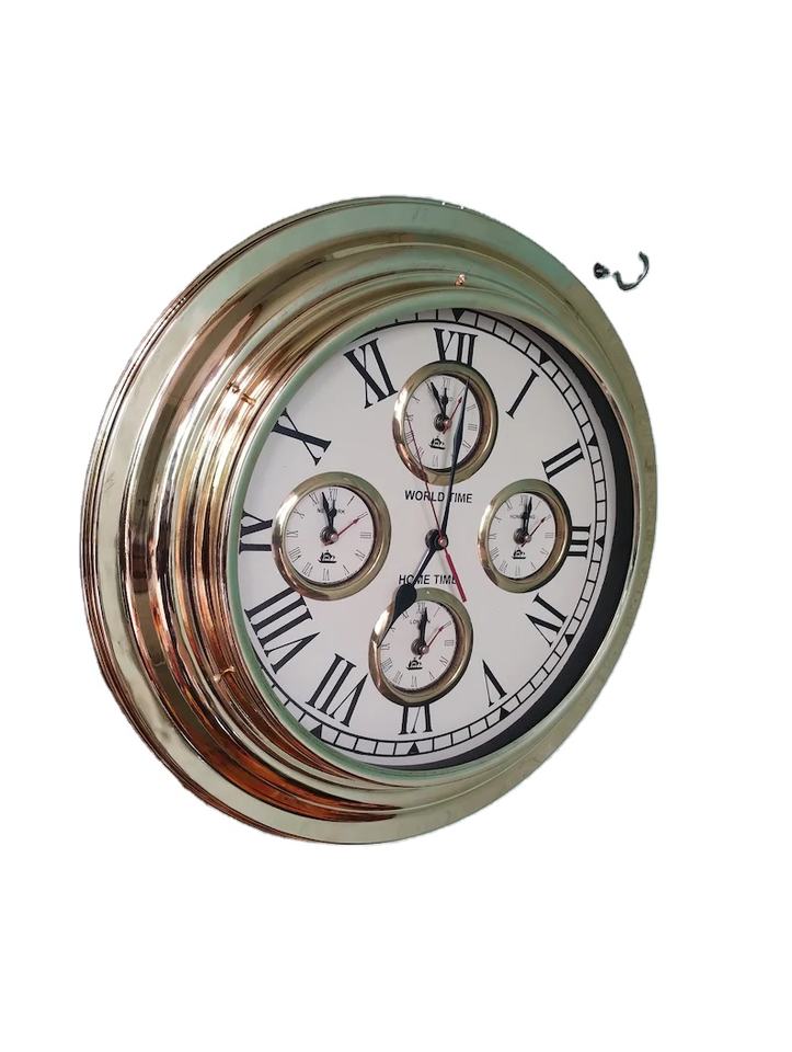 Viking World Time Clock 17" Brass Maritime Ship Wall Clock Nautical Home and Office Decor Clock. by Calvin handicraft