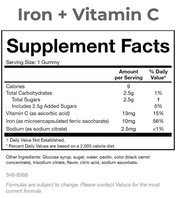 Product Name:Iron (20mg) + Vitamin C (26mg) Gummies