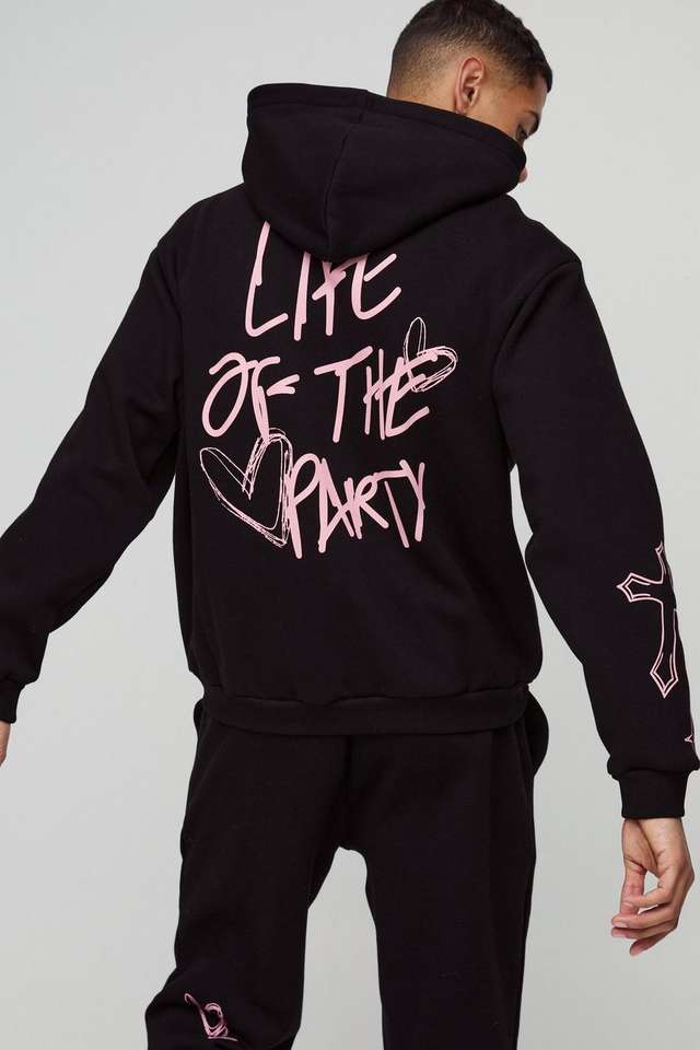 Worldwide Oversized Life of the Party Slogan Hoodie Sweatpants Jogger Set with Cargo Pant Tracksuit Two Piece set Tracksuit