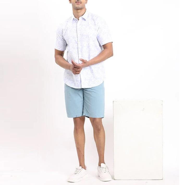 Worsted Knitted Men's Classic Fit 100% Cotton Casual Flat Front Solid Chino Bermuda Shorts Slant Pockets Elastic Waist