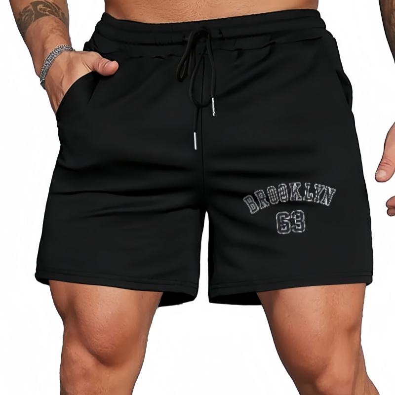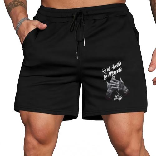 Worsted Polyester/Nylon Customized Pattern Logo Puff Printing Thick Black Men Casual Mid Board Shorts Breathable Waterproof