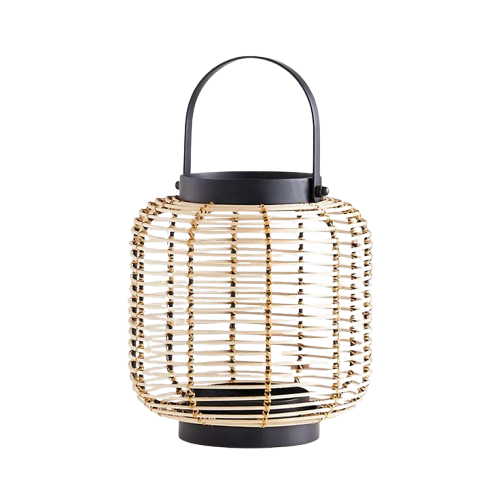 Woven Bamboo Design Lantern Glass Windproof Eco Friendly Material Rattan Lighting Accessories Wholesale Price Home & Hotel