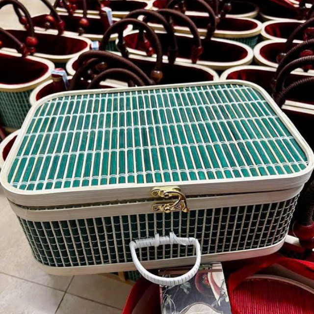Woven Bamboo Gift Basket with Elegant Design and Handle for Tea, Coffee or Snacks Presentation on Festive Days