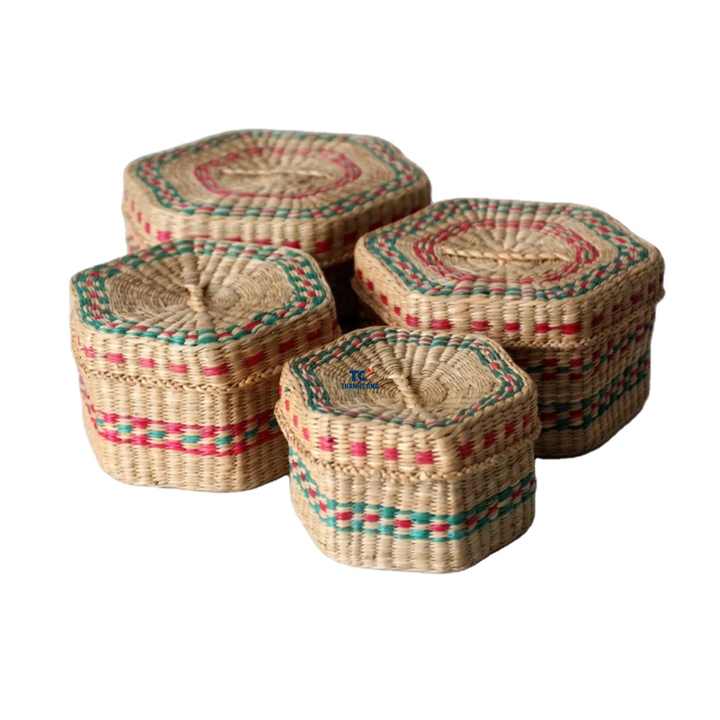 Woven Basket Decor Gift Baskets Fruit Organizer Boxes Natural Seagrass Storage Basket With Lid for Wholesale
