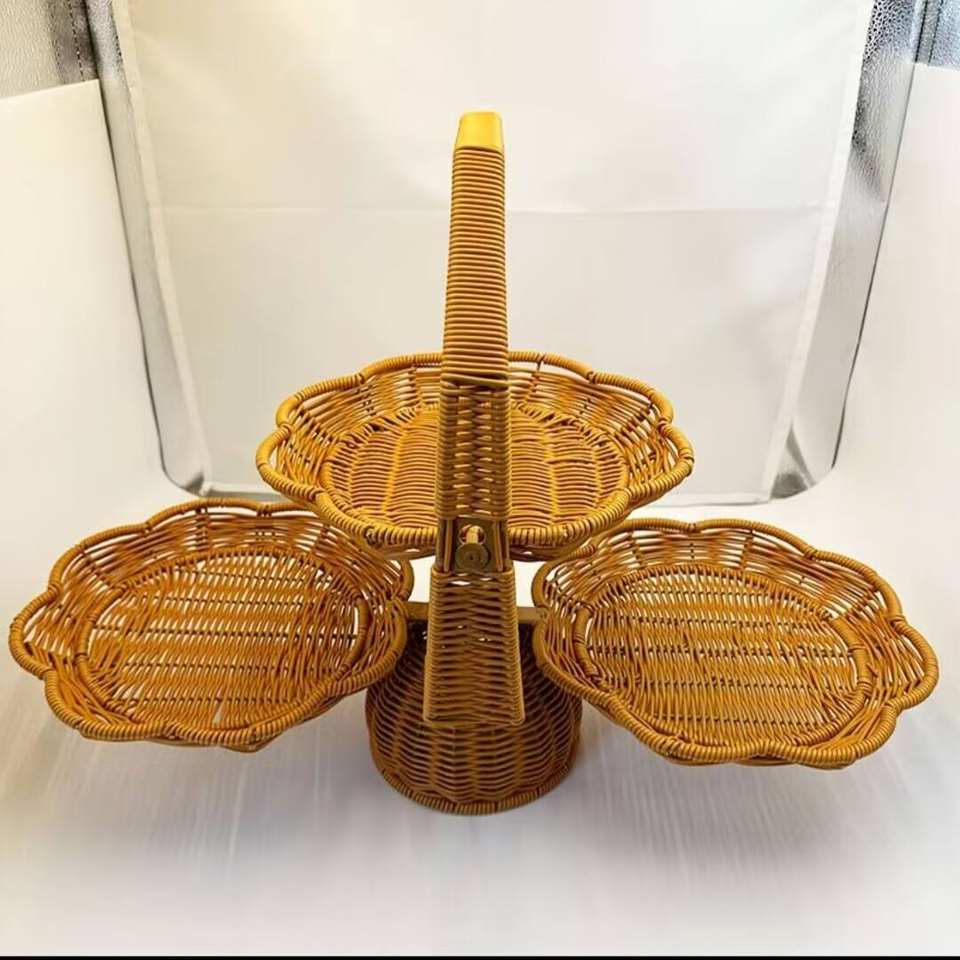 Woven Basket Foldable Double-layer Three-layer Fruit Plate Household