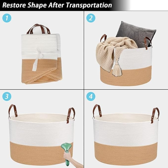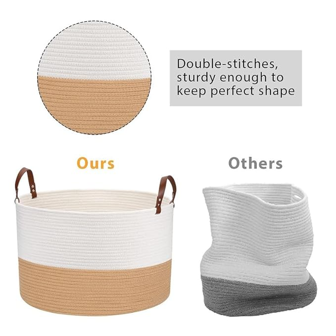 Woven Cotton Storage Basket with Leather Handles White Tan Design for Indoor Outdoor Decor Hot Selling Organizer