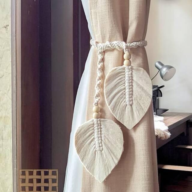 Macrame Cotton Bohemian Leaves Shape Decorative Curtain Tiebacks Durable Material Easy Installation Customizable Length for