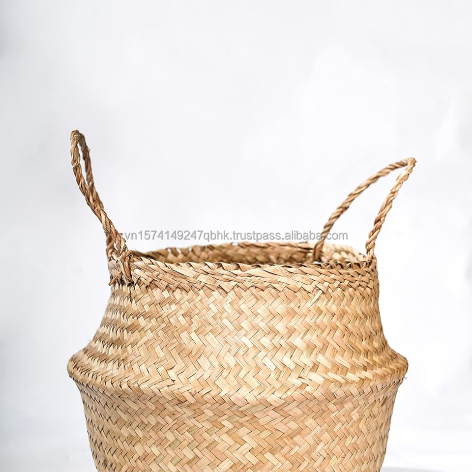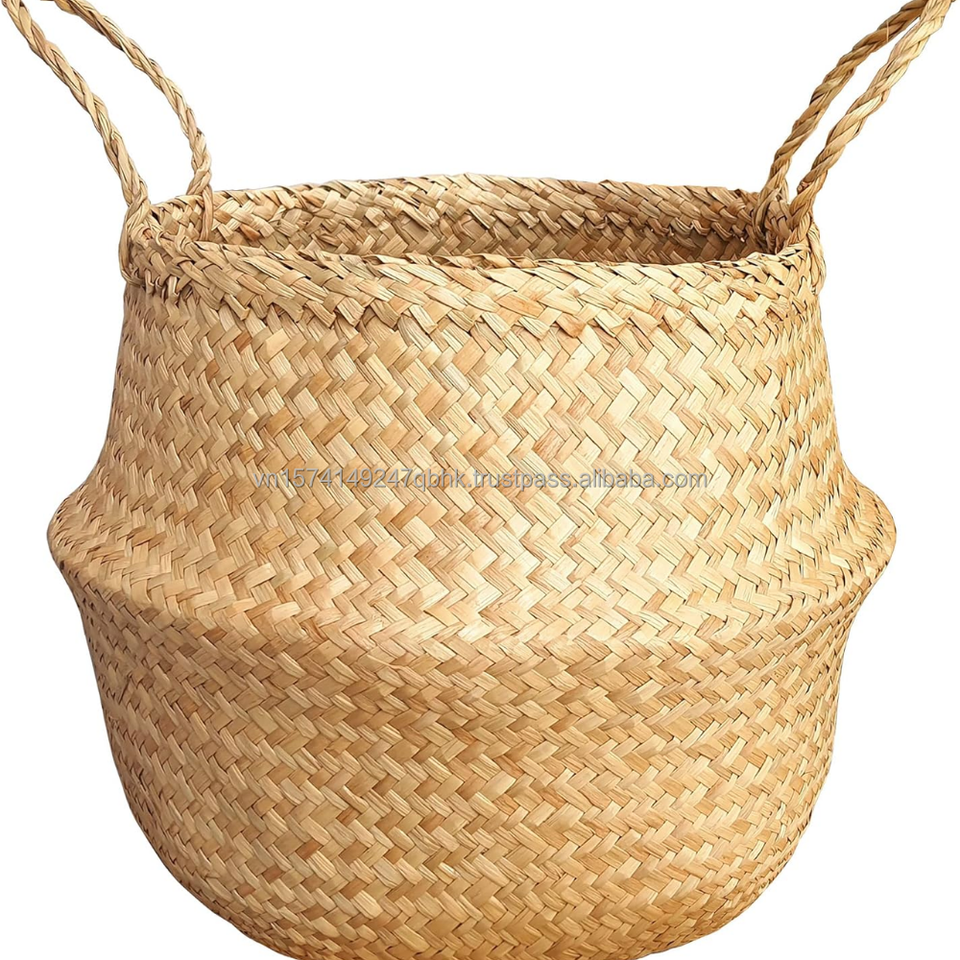Woven Eco Friendly Dipped white Seagrass Belly Basket Multipurpose Storage For Nursery Plant Laundry Scandinavian Style Handmade