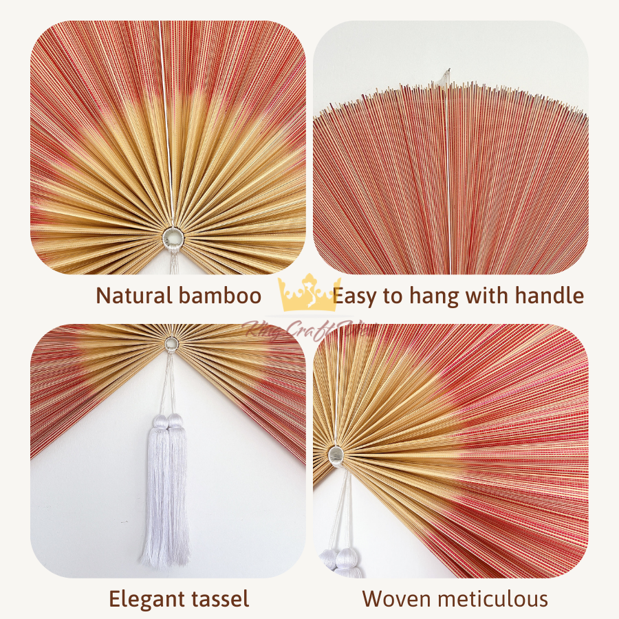 Woven Large Pink Bamboo Fan Headboard Wall Hanging Fan Wall Art Handicraft Decoration for Home Living Bedroom Hotel Restaurant