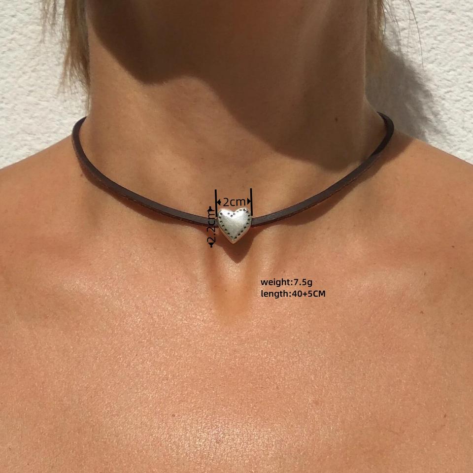 Woven Leather Rope Pendant Necklace for Women Vintage Heart-Shape Brass Link Chain UIONEN 1345 Gold Plated Stylish Trendy