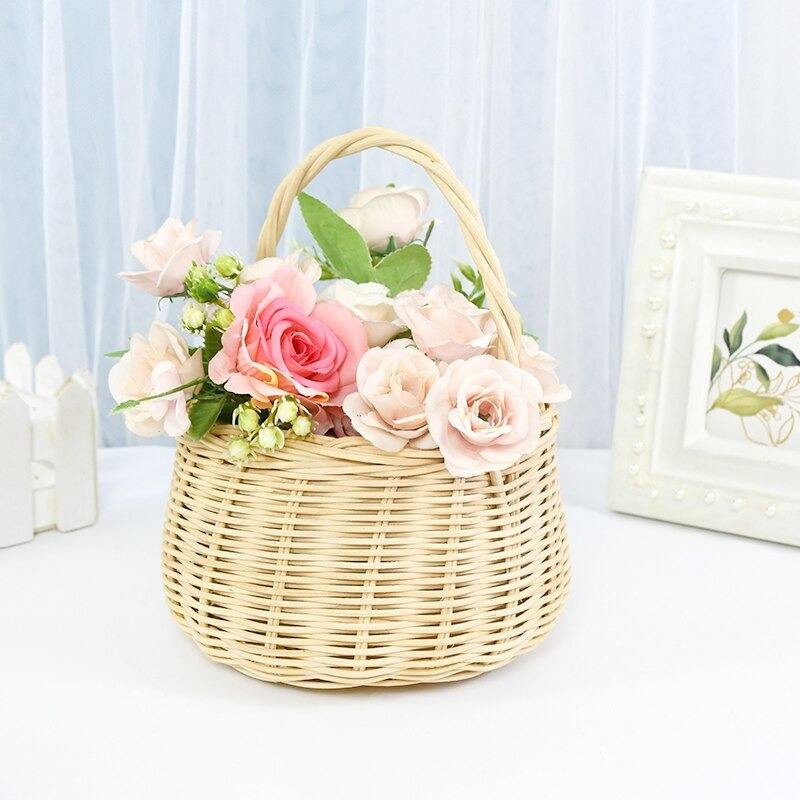 Woven Natural Rattan Easter Egg Fruit Storage Basket Home Decor Small White Flower Basket for Girl