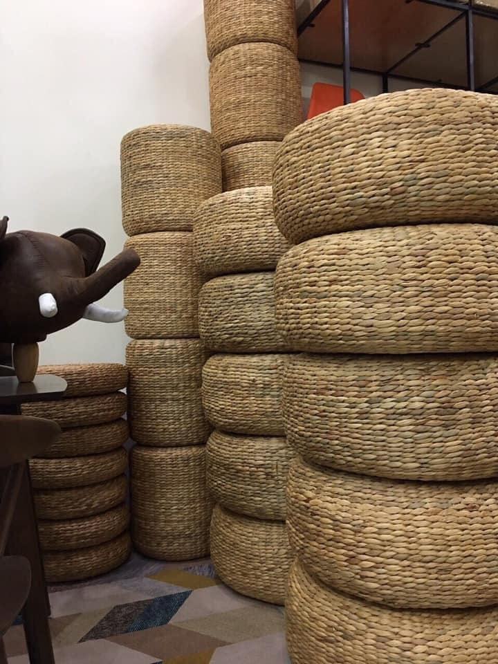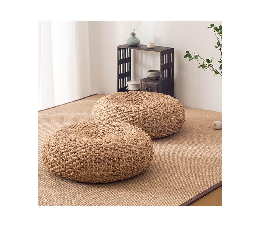 Woven Natural Water Hyacinth Round Cushion Ottoman, Rattan Round Ottoman. Angelina WA: +84327746158