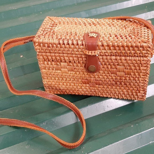 Woven Rattan Shoulder Bag \ Strong & Stylish Straw Bag for Picnic & Beach