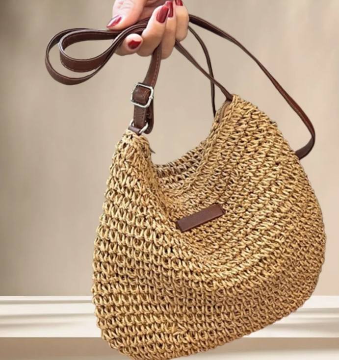 Woven Straw Crossbody Bag for Women, Summer Beach Purse, Boho Messenger Handbag