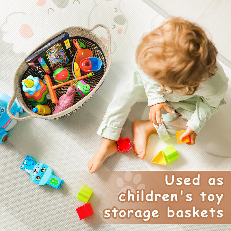 Woven basket with cotton rope handles cute cotton basket for gifts decorative basket for dog pet toys storage