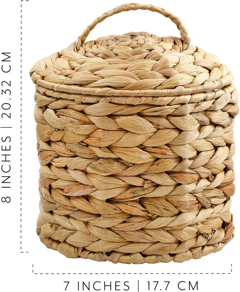 Woven container water hyacinth with a lid Size: D7 x H8 inch