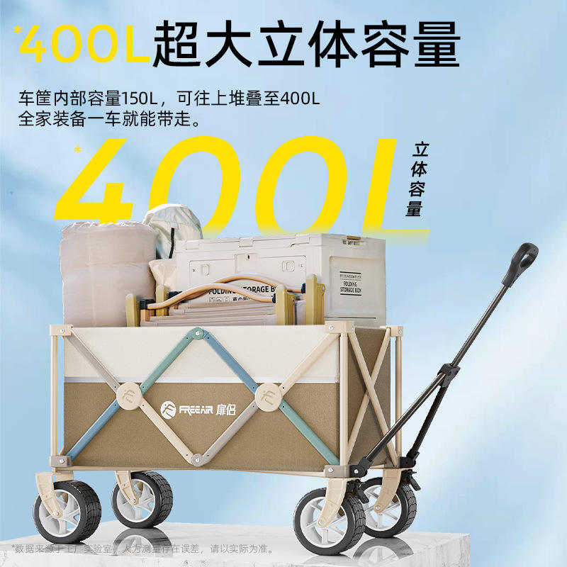 Wow Foldable Camping Trolley Tan Metal 300 Jin Capacity Outdoor Portable Cart With Firm Wheels Durable Design