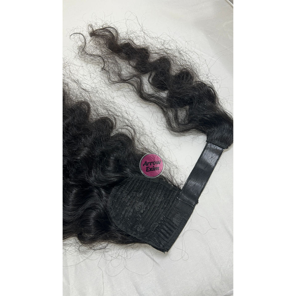 Wrap-Around Curly Ponytail Human Hair Extensions Arrow Exim Raw Remy Volume Boost Full Set