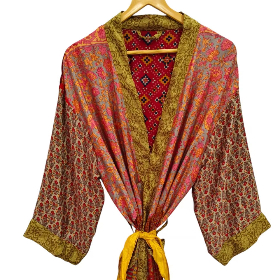 Wrap Dress Indian Tunic Sari Robe Bridal Gown Maternity Gown Gift Robe Beach Party Wear Indian Printed Silk Sari Kimono,