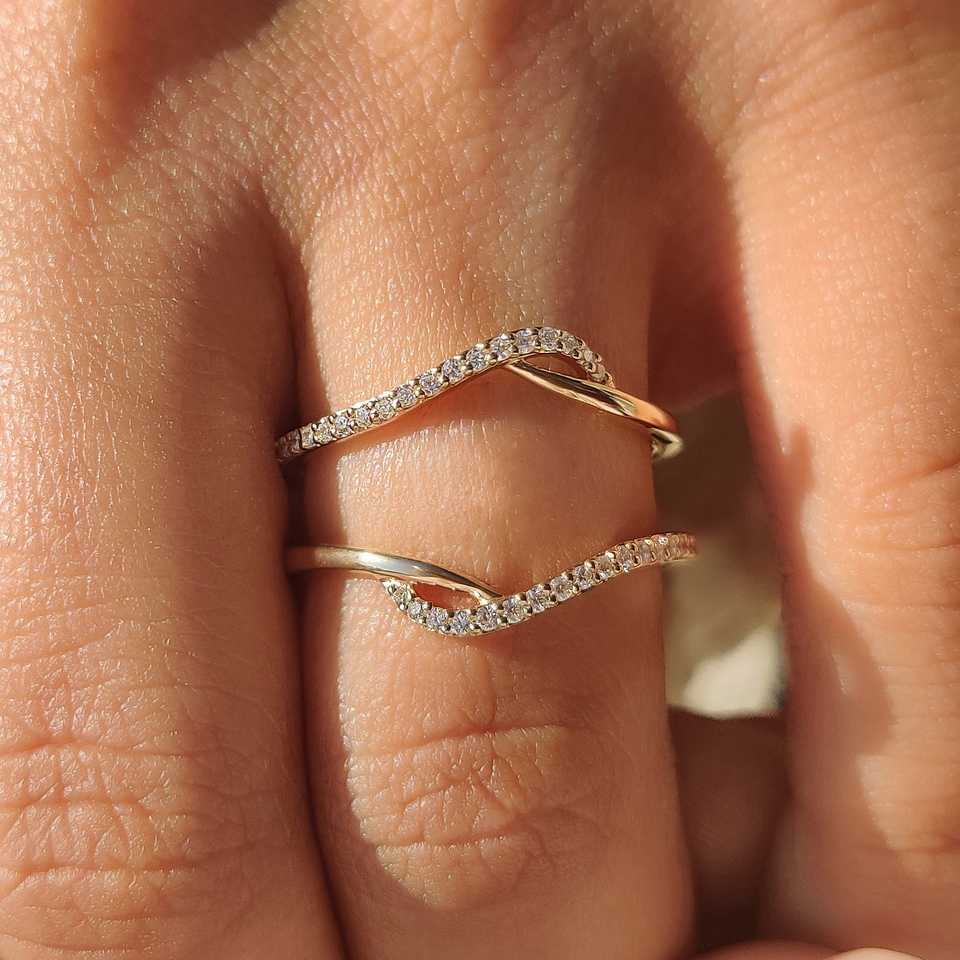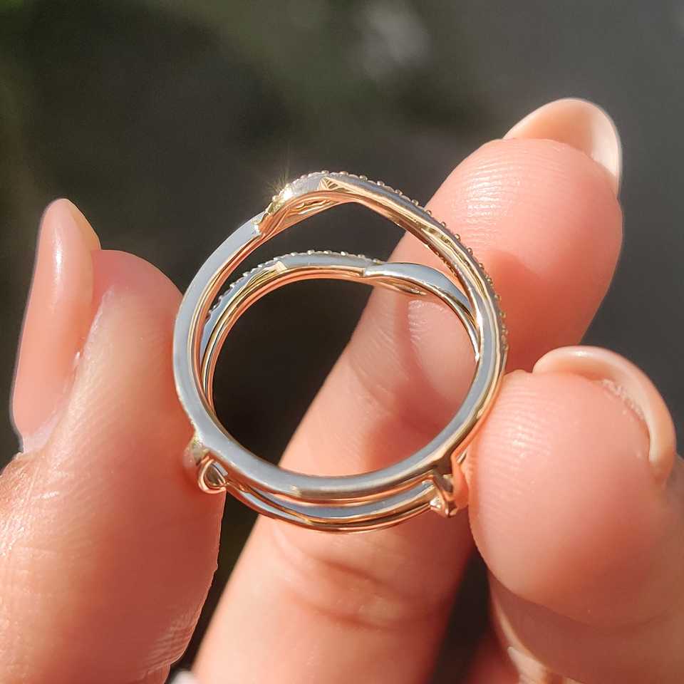 Wrap Guard Enhancer Pave Set Trendy Anniversary Wedding Band Split Shank Bypass Round Cut Moissanite Engagement Ring Gift Party