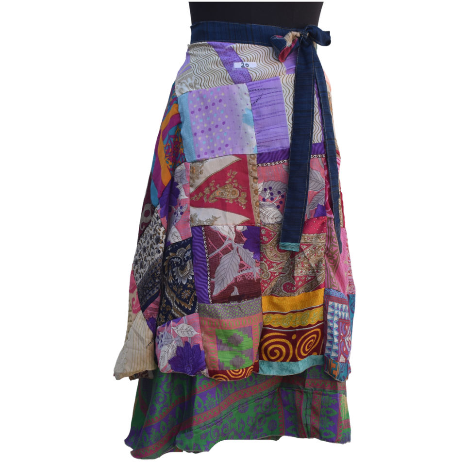 Wrap Skirt Vintage Silk Sari Patchwork Double Layered Reversible Magic Dress Beach Wear with Belt Decoration 100% Silk