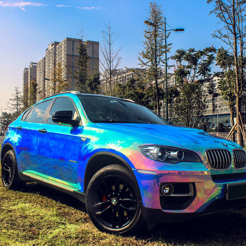 Wrapmaster 1.35*18m Rainbow Chrome White Color Changing Anti Scratch UV Proof Self-adhesive PVC Vinyl Wrap Rolls