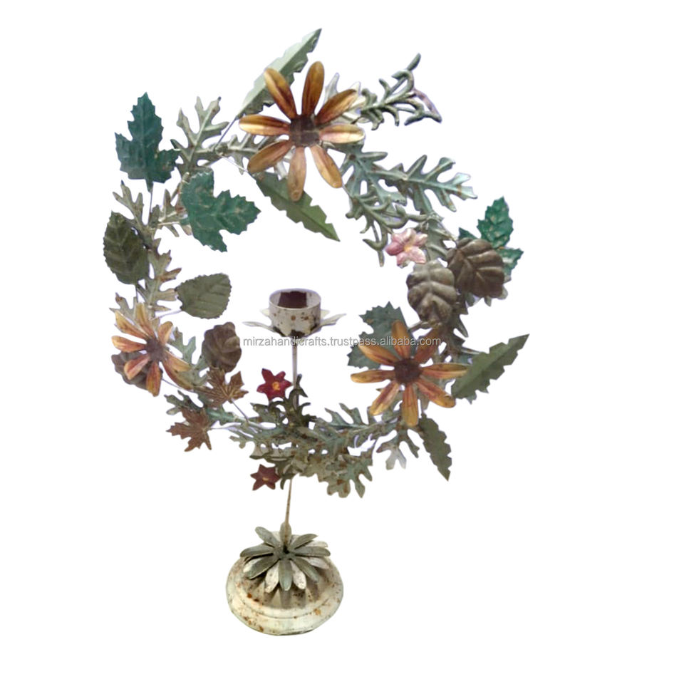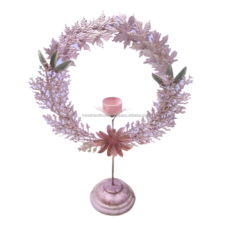 Wreath Stand with Holder Leaf & Flower Design Round Metal Wreath for Front Door Wall Window Garden Areas Party Decoration