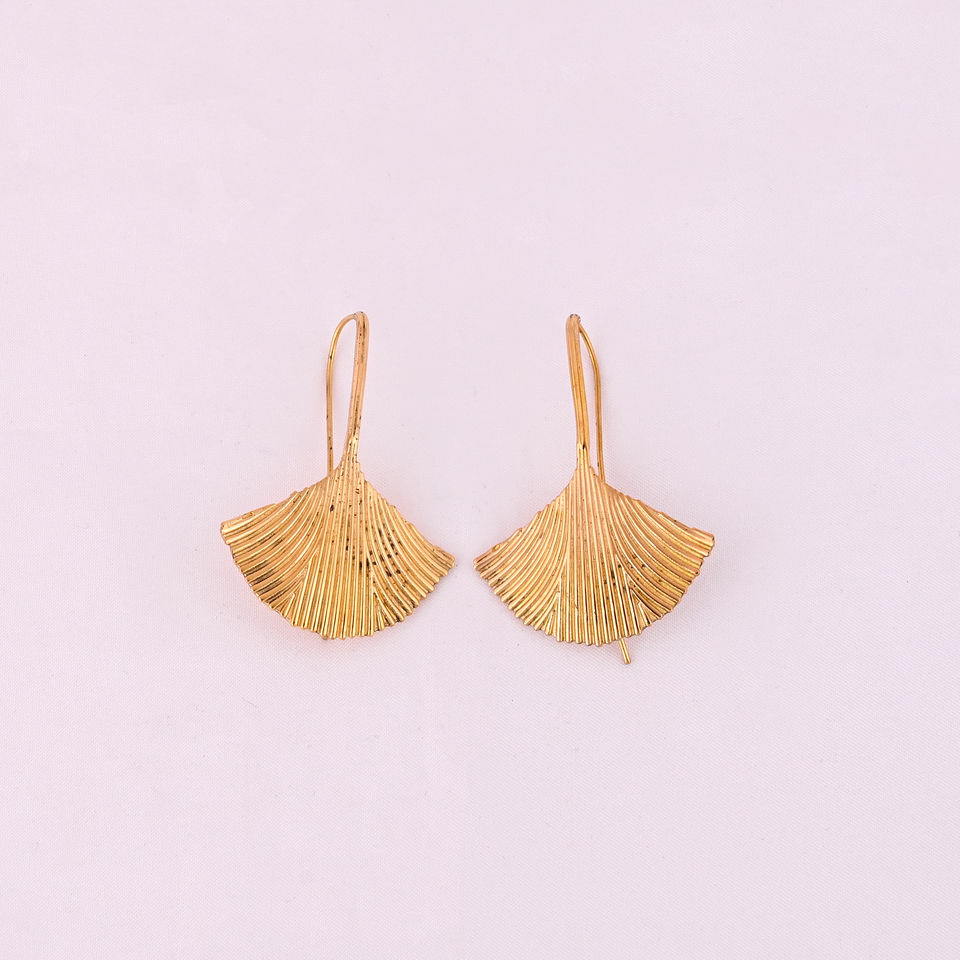 picture:Golden Fan Dangle Earrings 55x40MM