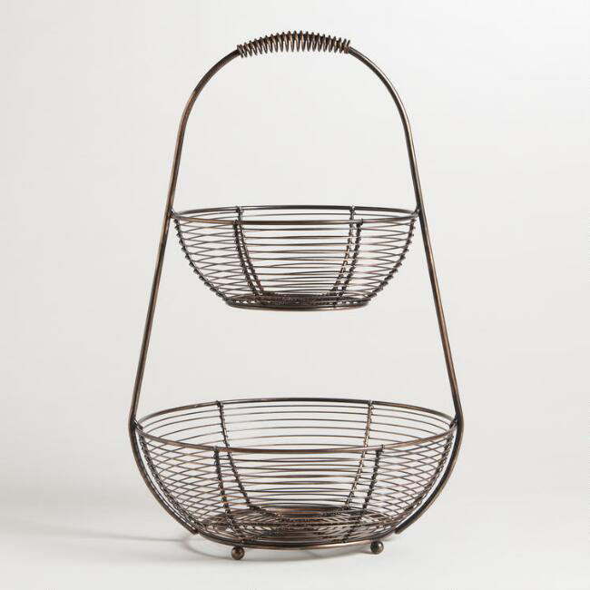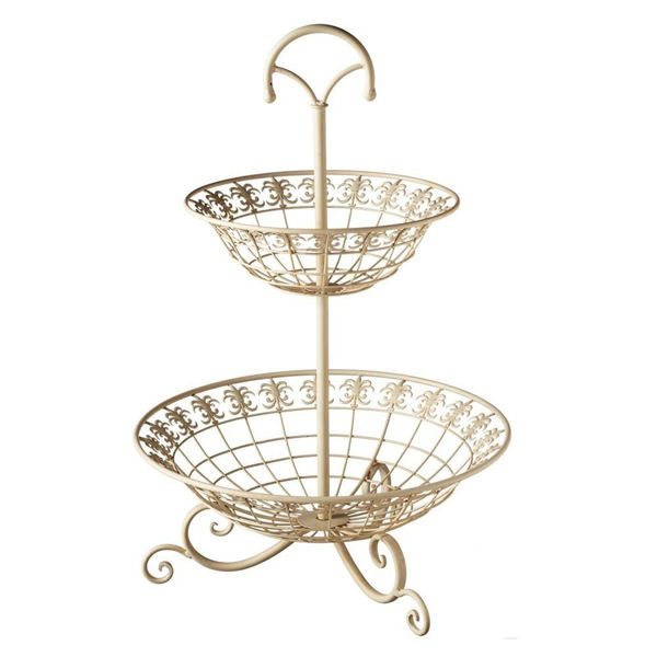 Wrought Iron 2 Tier Fruit Basket, Iron Wire Kitchen Fruit Basket Handmade Metal Basket