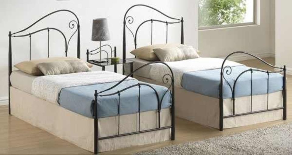 Wrought Iron Bed with Side Table/Wholesale Cheap Black Single Size Metal Bed Frames/ Wrought Iron Bed Bed for Girls Hotel