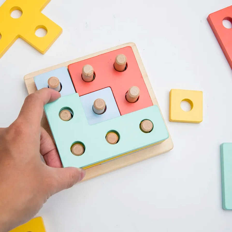 Wudly 4-in-1 Wooden Educational Shape Sorter Puzzle Early Interactive Learning Toy for 3+ Years Kids Bright Colors Child Sorting