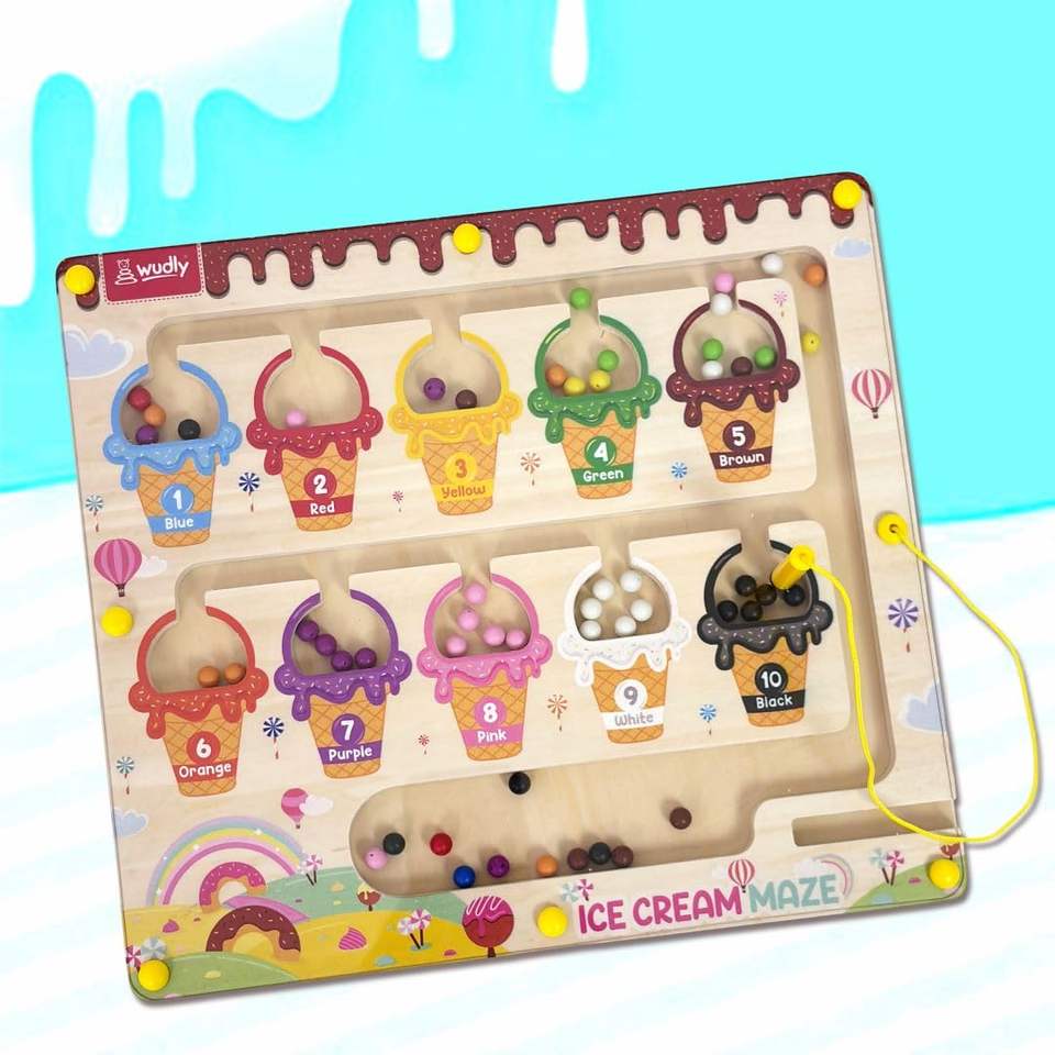 Wudly Educational Wooden Bead Maze Color Number Puzzle Board 3-5 Years Age Range for Boys Girls Fine Motor Skills Improvement