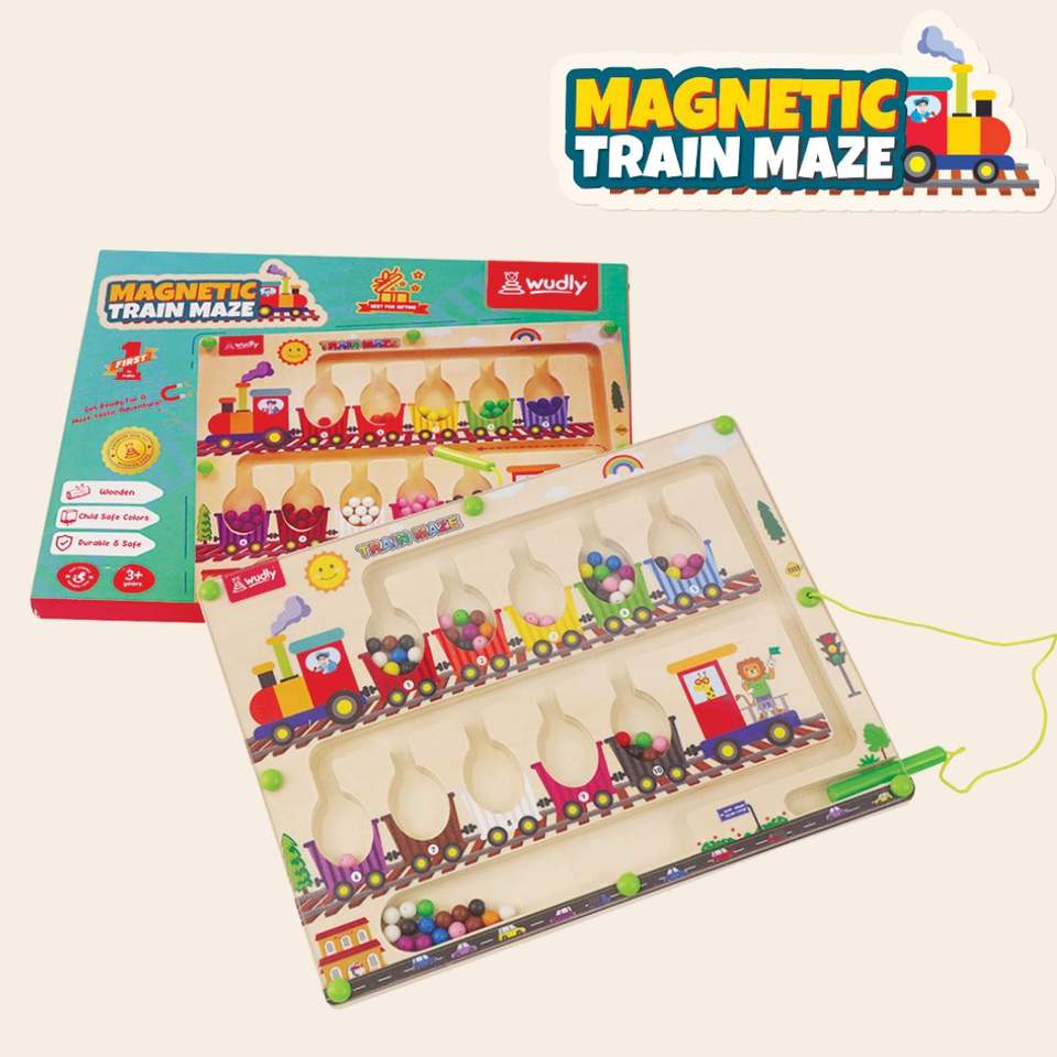 Wudly Wooden Educational Toy Magnetic Train Maze Board for Ages 3-5 Colour Sorting Nesting & Stacking Puzzle with Magnetic Wand