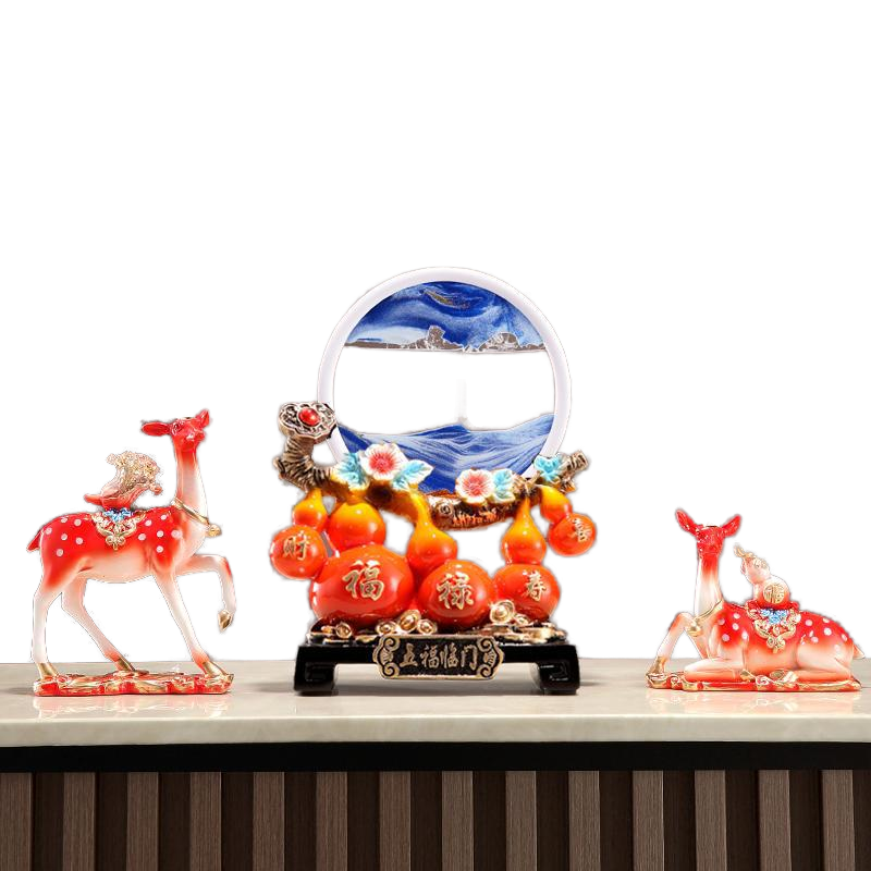 Wufu Linmen Deer Ornament Epoxy Resin Folk Art Light Luxury High-End TV Cabinet Entrance Art Hourglass Wedding Housewarming Gift