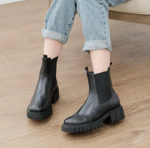 Wypex Best-Selling Women's Stylish Black Leather Ankle Boots Youthful Design Comfortable Western Classic Height Increasing