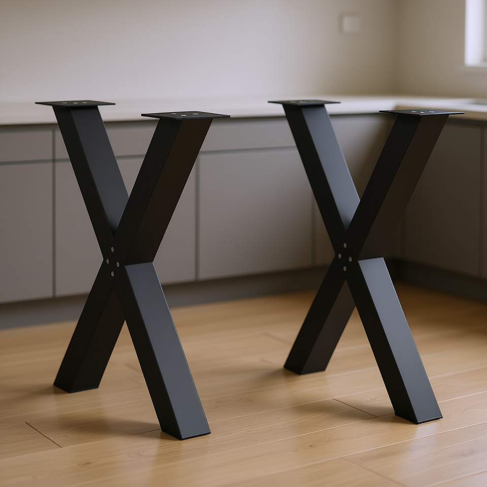 X-Shaped Dining Table Legs 2pcs Black Steel 27.6\"x(28.3\"-28.7\") Heavy Duty Industrial Furniture Legs