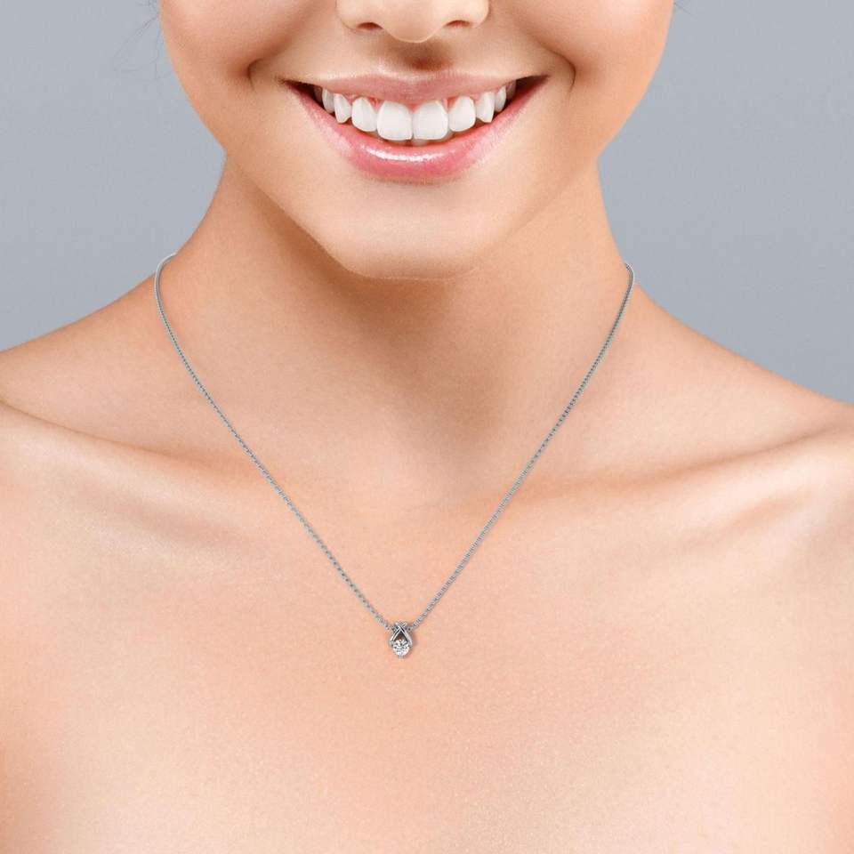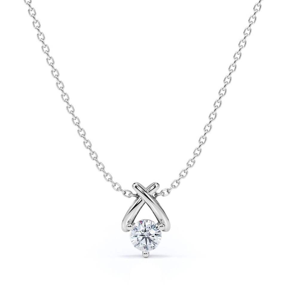 X-Shaped Round Cut Real Diamond Pendant Necklace in 18K White Gold over Silver