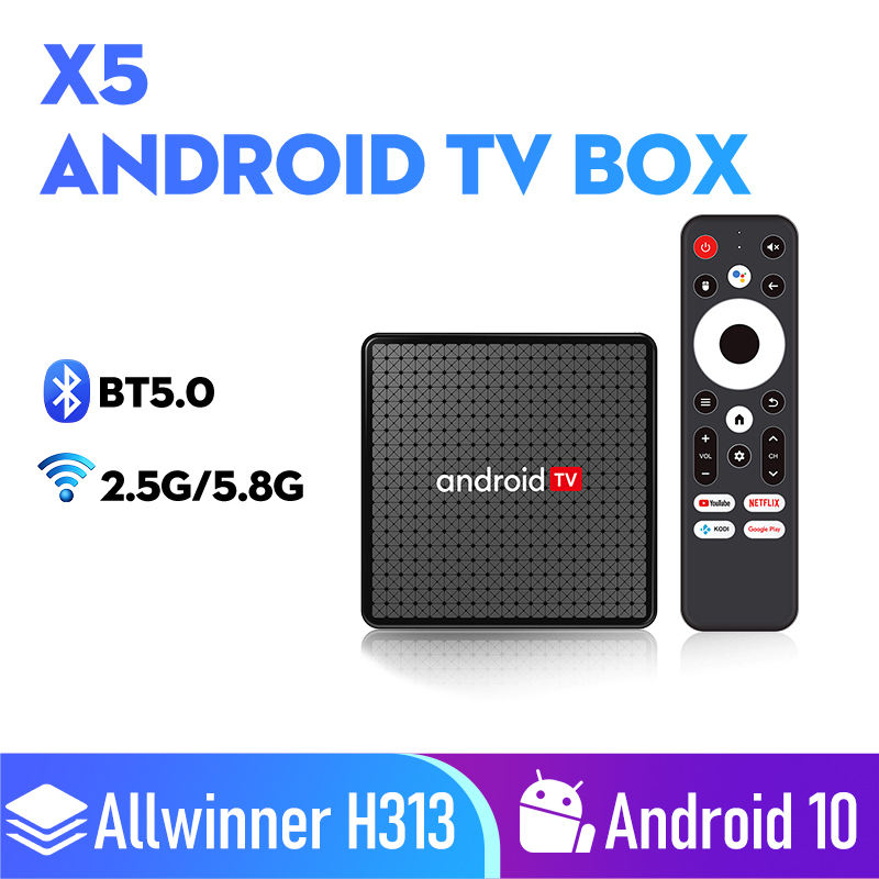 X5 Android Box 2GB RAM 16GB ROM Allwinner H313 Quad Core ARM Cortex A53 2.4GHz/5.8GHz Dual WiFi BT 5.0 Support H.265 Smart Box